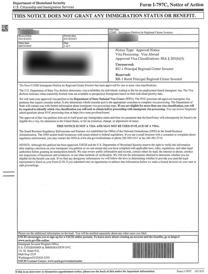 RIA 법에 따라 Rural 프로젝트는 이민국에서 I-526E 청원서를 우선적으로 처리합니다. 승인까지의 속도가 확연히 빨라질 수 있는 구조적 장점이 있습니다.