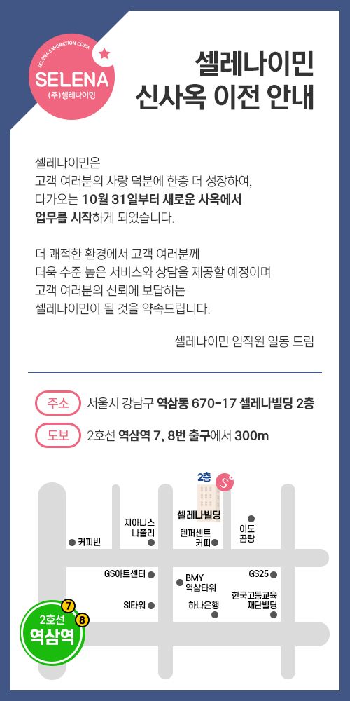 (광고)셀레나이민 신사옥 이전 안내💌