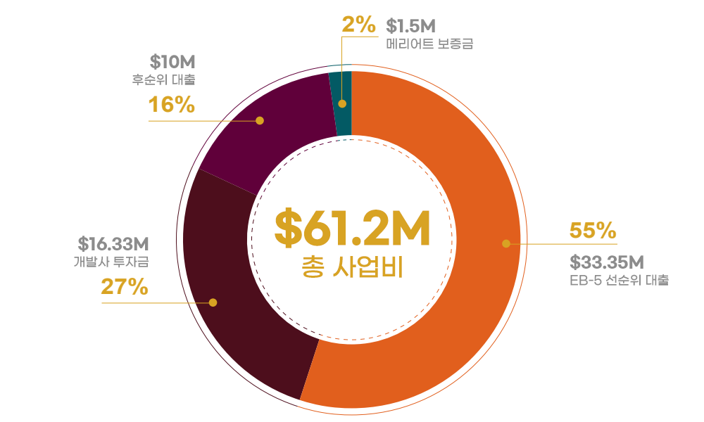 총 사업비는 $61.2M입니다. 이 구조를 보면 EB-5 투자자 관점에서 안정성이 매우 높습니다.
